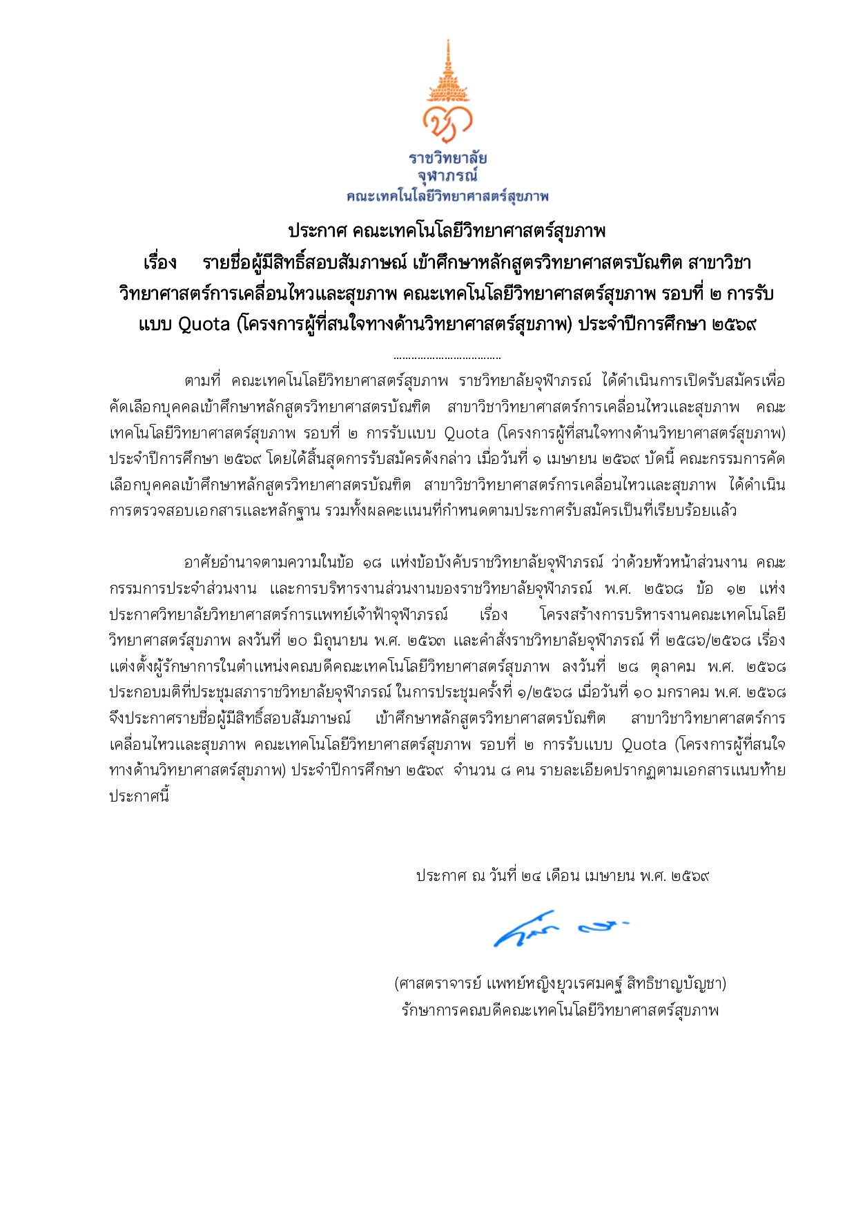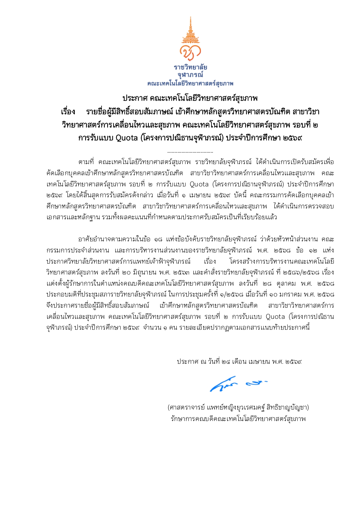 PDF_ประกาศรายชื่อผู้มีสิทธิ์สอบสัมภาษณ์ (โครงการปณิธานจุฬาภรณ์)