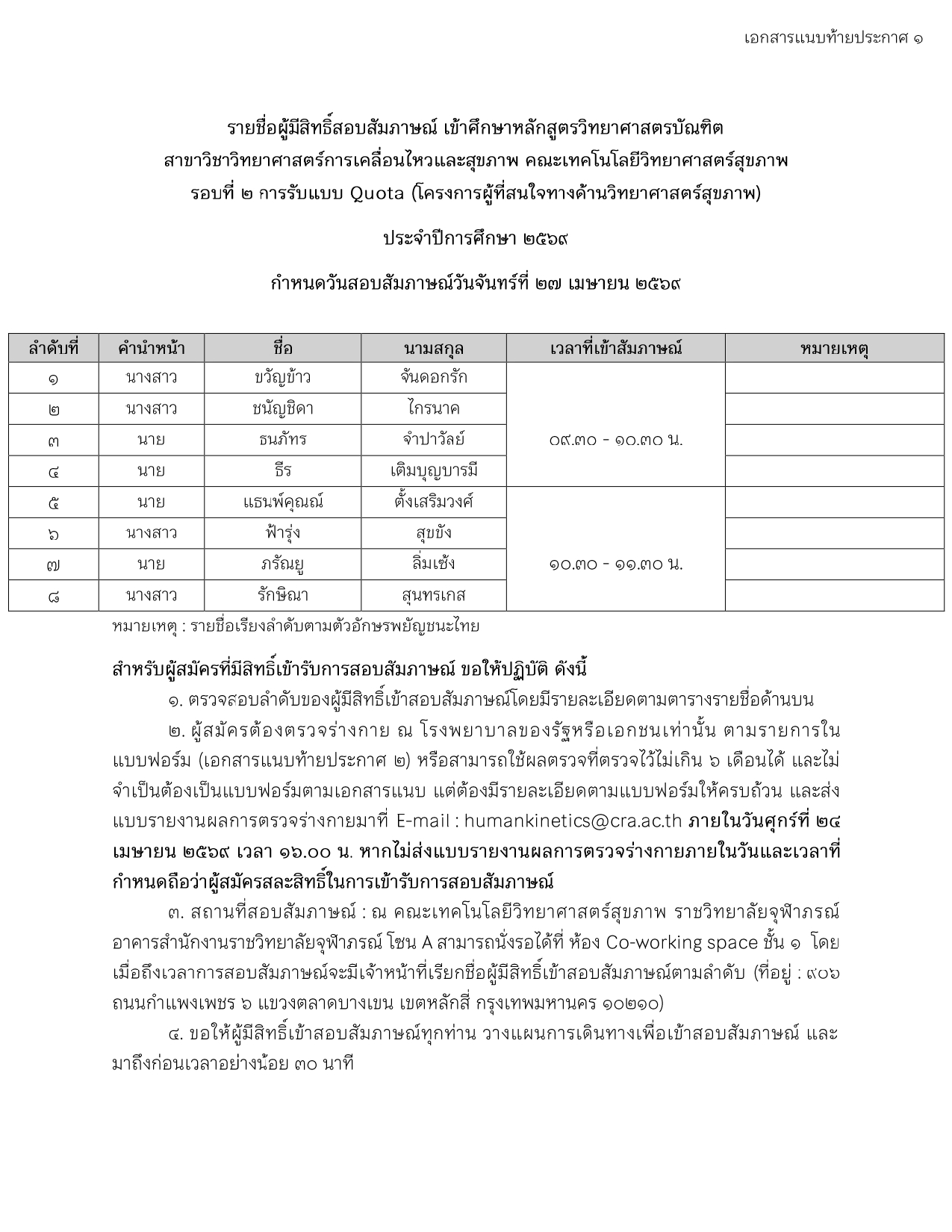 PDF_ประกาศรายชื่อผู้มีสิทธิ์สอบสัมภาษณ์ (โครงการผู้ที่สนใจทางด้านวิทยาศาสตร์สุขภาพ)