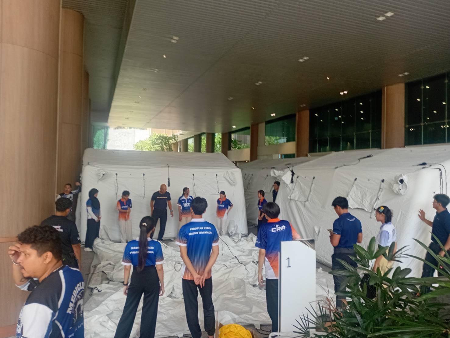 เมื่อวันที่ 17 กันยายน 2568 การเรียนการสอนของนักศึกษาพาราเมดิกได้จัดกิจกรรมการฝึก “การกางเต็นท์โรงพยาบาลสนาม” ซึ่งมิใช่เพียงการตั้งเต็นท์ธรรมดา แต่เป็นการจำลองสถานการณ์จริงที่เต็มไปด้วยความท้าทาย นักศึกษาได้เรียนรู้การทำงานร่วมกันเป็นทีม การวางแผนพื้นที่อย่างมีระบบ และการรับมือกับสภาวะกดดันเสมือนอยู่ในเหตุการณ์ฉุกเฉินหรือภัยพิบัติ ถือเป็นประสบการณ์ที่เสริมสร้างทักษะและความเข้าใจในวิชาชีพได้เป็นอย่างดี