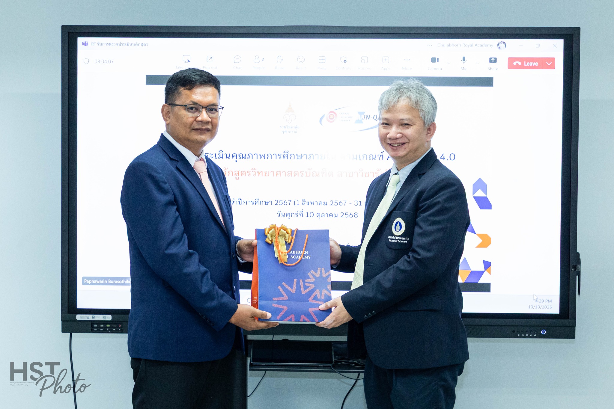 โรงเรียนรังสีเทคนิค คณะเทคโนโลยีวิทยาศาสตร์สุขภาพ ราชวิทยาลัยจุฬาภรณ์ ได้รับการตรวจประเมินคุณภาพการศึกษาภายในตามเกณฑ์ AUN-QA Version 4.0 ประจำปีการศึกษา 2567 เมื่อวันที่ 10 ตุลาคม 2568 โดยมี อาจารย์ ดร.นพ.วิทยา สังขรัตน์ รักษาการรองคณบดีด้านวิจัย นวัตกรรม และเทคโนโลยีสารสนเทศ เป็นประธานกล่าวต้อนรับ พร้อมด้วยคณาจารย์และบุคลากรเข้าร่วมให้ข้อมูลอย่างพร้อมเพรียง ณ ห้องประชุม Sono Classroom 3 ชั้น 2 โซน D อาคารสำนักงานราชวิทยาลัยจุฬาภรณ์
