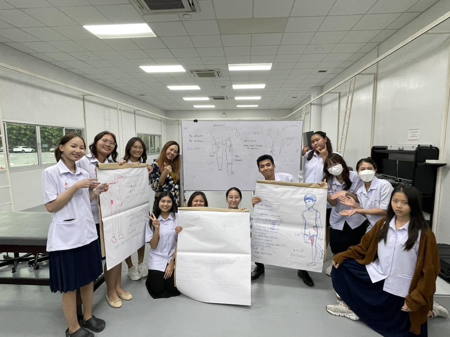 ภายในชั้นเรียน นักศึกษาได้เรียนรู้ผ่านกรณีศึกษา (Case Study) ของ “นักวิ่งที่มีปัญหากล้ามเนื้อรอบสะโพก” โดยใช้วิธีการวิเคราะห์เพื่อทำความเข้าใจการทำงานของกล้ามเนื้อและโครงสร้างที่เกี่ยวข้อง ตลอดจนปัจจัยที่ส่งผลต่อสมดุลและประสิทธิภาพในการเคลื่อนไหว กิจกรรมนี้ช่วยให้นักศึกษาสามารถประยุกต์องค์ความรู้ทาง Kinesiology และ Anatomy เข้าสู่สถานการณ์จริง ต่อยอดทักษะการวิเคราะห์ปัญหา ร่วมกันทำงานเป็นทีม และสร้างเสริมการเรียนรู้เชิงลึกผ่านการเรียนรู้แบบ Hands-on และ Case-based ซึ่งเอื้อต่อการนำองค์ความรู้ไปประยุกต์ใช้ในด้านสุขภาพ การเคลื่อนไหว และการฟื้นฟูสมรรถภาพร่างกายในอนาคตได้อย่างมีประสิทธิภาพ