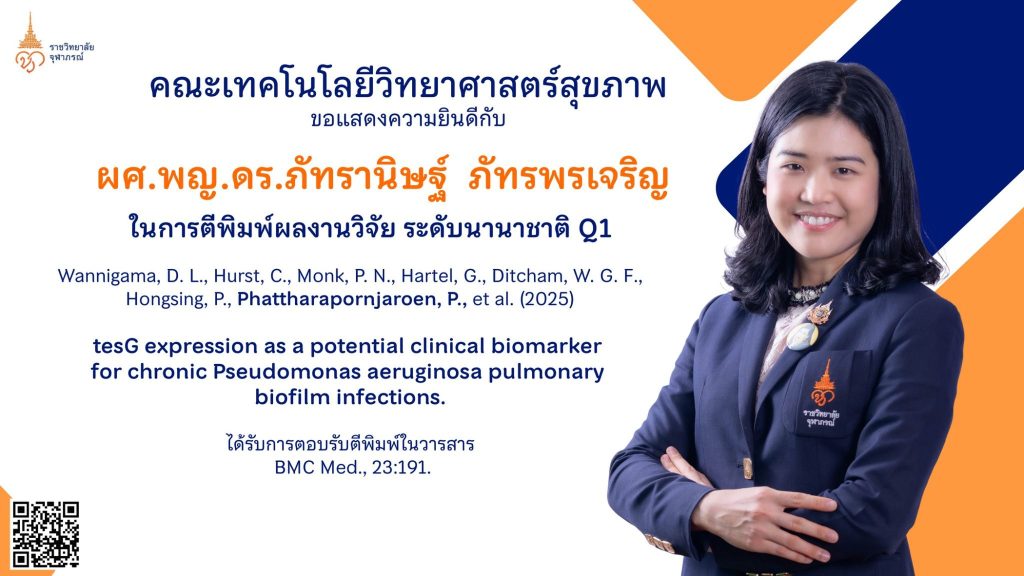 ขอแสดงความยินดีกับ ผศ.พญ.ดร.ภัทรานิษฐ์ ภัทรพรเจริญ กับความสำเร็จในการตีพิมพ์ผลงานวิจัยในวารสารวิชาการระดับนานาชาติ ระดับ Q1