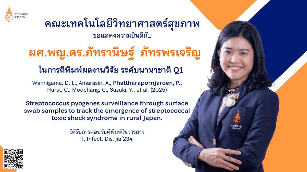ขอแสดงความยินดีกับ ผศ.พญ.ดร.ภัทรานิษฐ์ ภัทรพรเจริญในโอกาสที่ผลงานวิจัยของท่านได้รับการตอบรับให้ตีพิมพ์ในวารสารวิชาการระดับนานาชาติ ชั้นนำในระดับ Q1 ซึ่งถือเป็นความสำเร็จที่น่าชื่นชมและเป็นอีกหนึ่งก้าวสำคัญในเส้นทางของการสร้างองค์ความรู้ทางวิชาการ