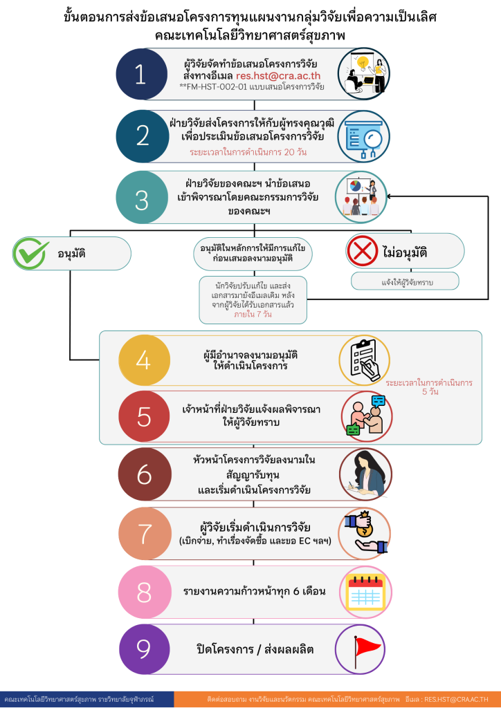 • Email Subject:  ส่งข้อเสนอโครงการวิจัยเพื่อขอรับทุนงานวิจัย คณะเทคโนโลยีวิทยาศาสตร์สุขภาพ ประจำปีงบประมาณ พ.ศ.2569