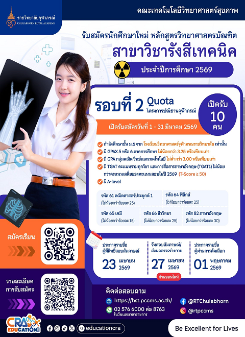 โพสเมื่อ: กรกฎาคม 9, 2025 10:50 amโรงเรียนรังสีเทคนิค คณะเทคโนโลยีวิทยาศาสตร์สุขภาพ ราชวิทยาลั...